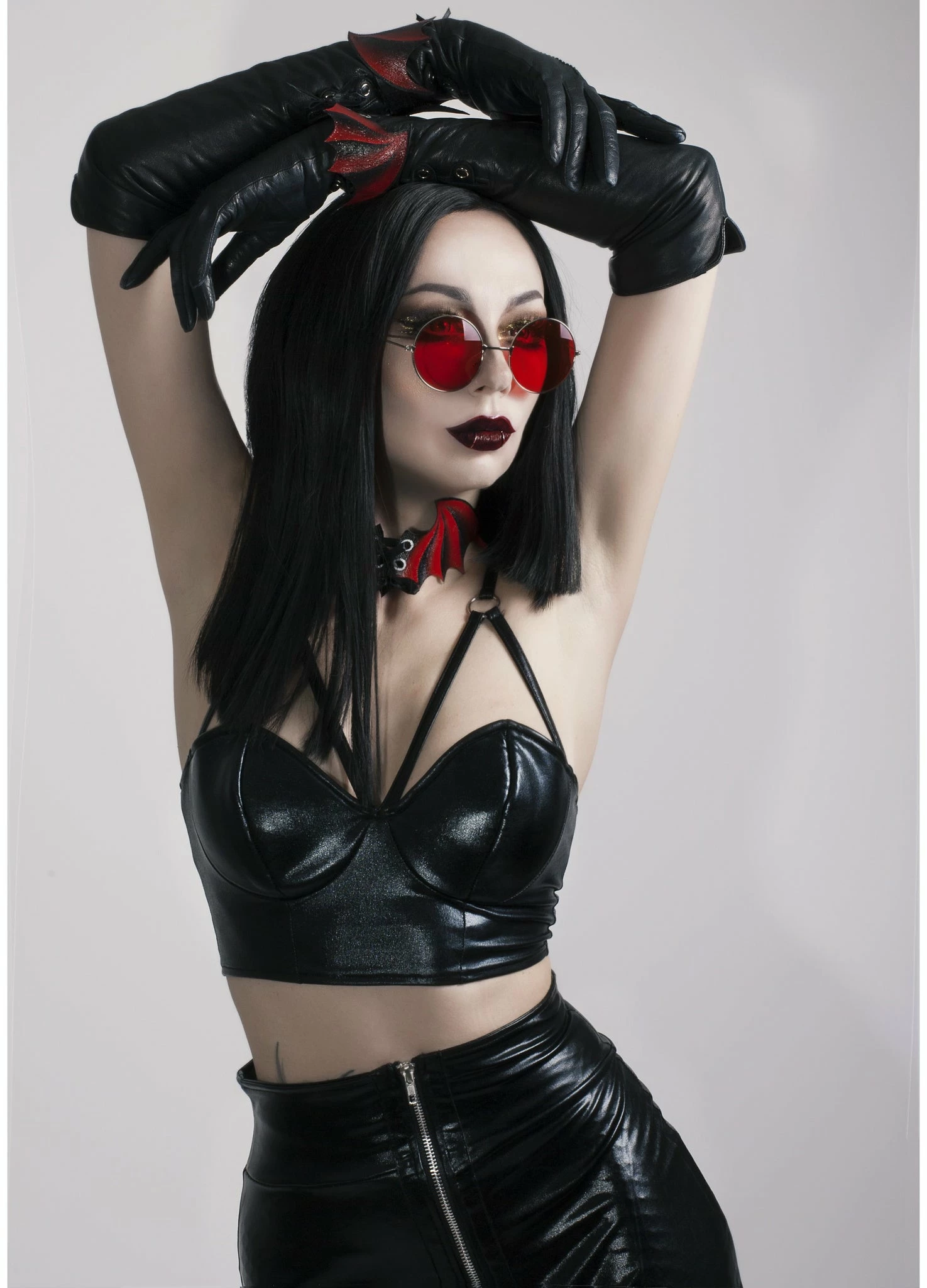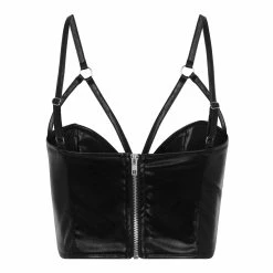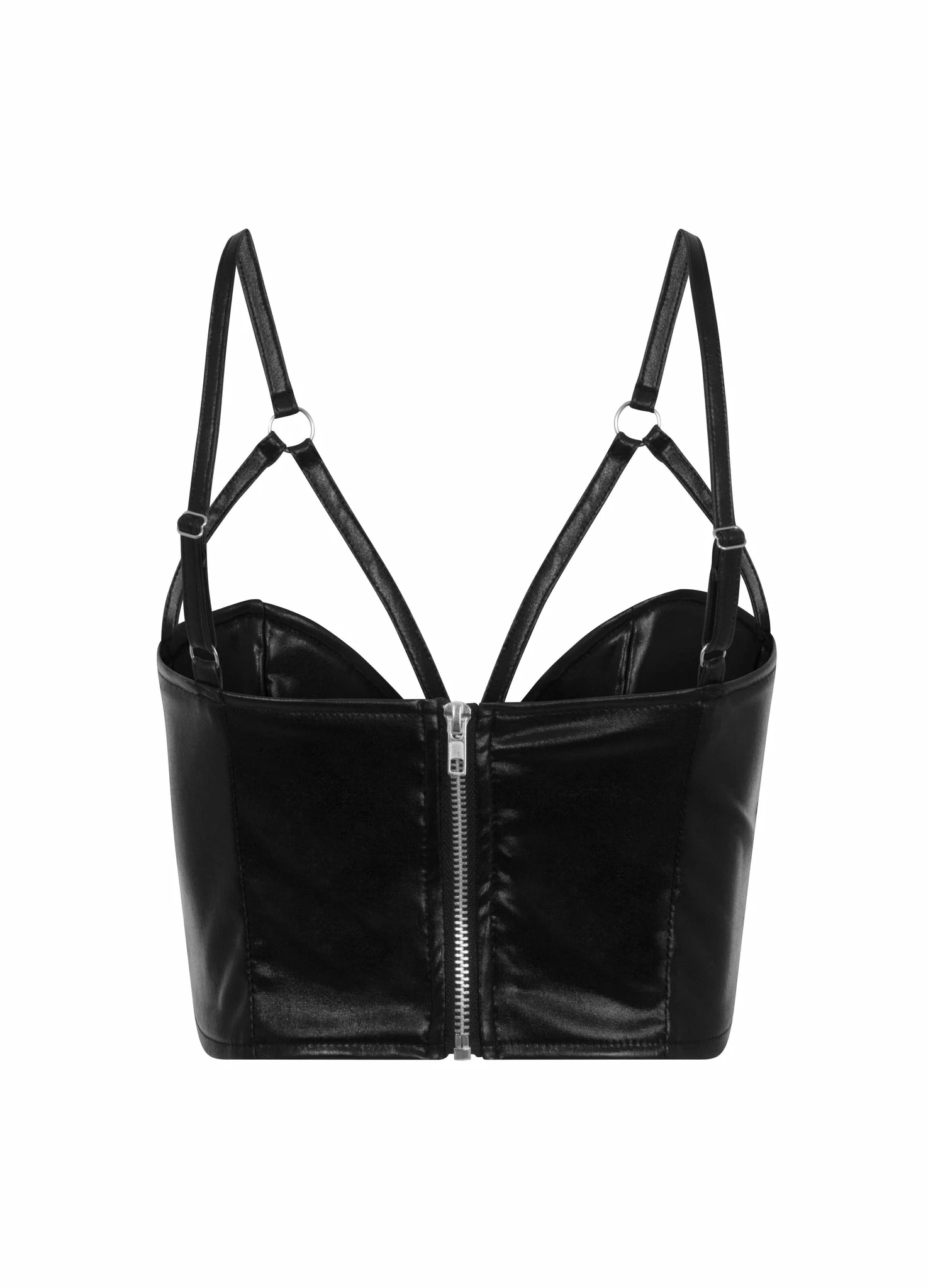 Another awesome addition to ANTIBrand’s vinyl range! This gorgeous black vinyl bralet features stunning harness inspired strap detailing on the chest, and fastens with an exposed back zip. Measuring 8″ in length the straps on this bralet can be adjusted for a comfortable fit.