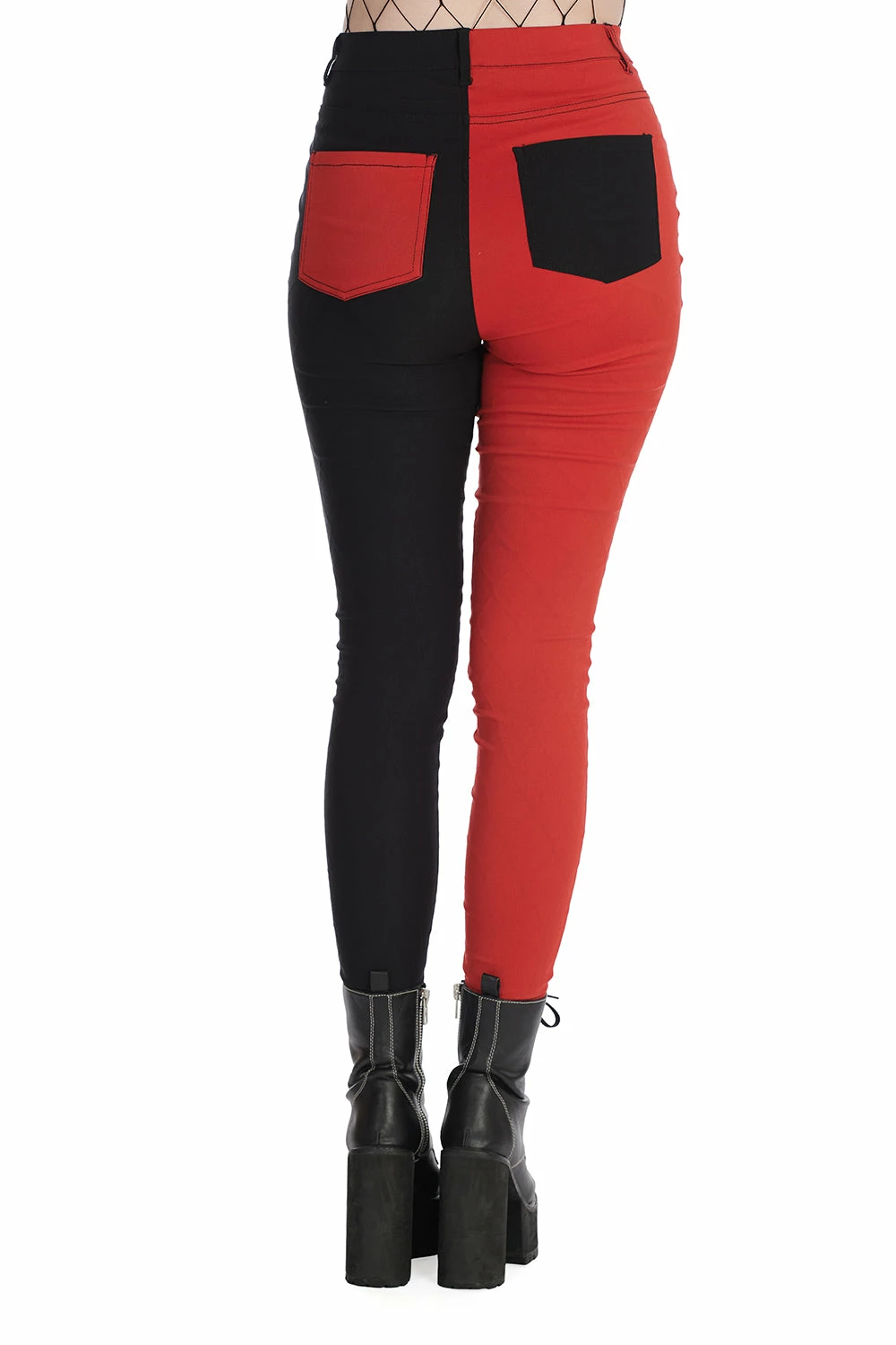 Banned Apparel Banned Bailey Half & Half Trousers – Red & Black