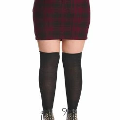 Stunning burgundy red tartan mini skirt from Banned Apparel with leg strap detailing and pentagram strap design on the front. This statement stretchy bodycon mini skirt is fitted with double leg straps to show off those curves to perfection. If you’ve got it, flaunt it!