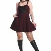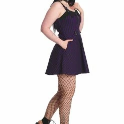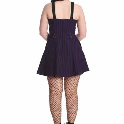 Absolutely stunning black and purple vertical stripe mini dress from Banned Apparel with metal hardware detailing. Featuring a metal pendant on the chest, a sweetheart neckline and thick shoulder straps, this sleeveless mini dress is fitted with a flared skirt to show off those curves to perfection. If you’ve got it, flaunt it!