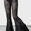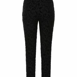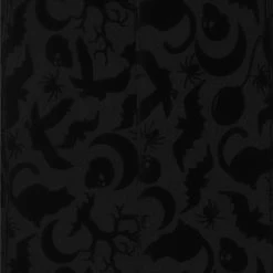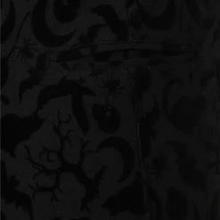 These lovely black trousers from Collectif come in a woven flocked fabric with just the right amount of stretch. A skinny fit design with structured high waist and black on black Halloween themed print featuring skulls, moons, cats, spiders and bats. With hidden side zip for fastening and back slit pockets, the inside leg measures approximately 28 inches / 71 cm and the total length is approx 39 inches / 99 cm (Size 10).
