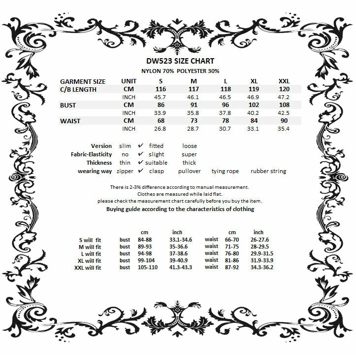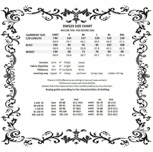 For the perfect fit please see Dark in Love’s size guide in the images.