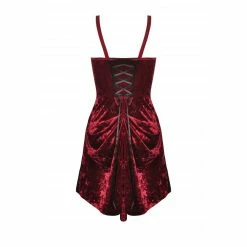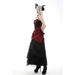 Elegant and dramatic dark red velvet mini dress by Dark in Love in a luxurious stretch velvet fabric with delicate embroidered detailing. This beautiful sleeveless dress evokes a feeling of victorian gothic style with a modern short length and seductive ribbon lace up back. This gorgeous dress is overlayed with black lace and embroidery paneling and can be worn by itself or layered over a longer skirt.
