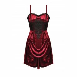 Elegant and dramatic dark red velvet mini dress by Dark in Love in a luxurious stretch velvet fabric with delicate embroidered detailing. This beautiful sleeveless dress evokes a feeling of victorian gothic style with a modern short length and seductive ribbon lace up back. This gorgeous dress is overlayed with black lace and embroidery paneling and can be worn by itself or layered over a longer skirt.