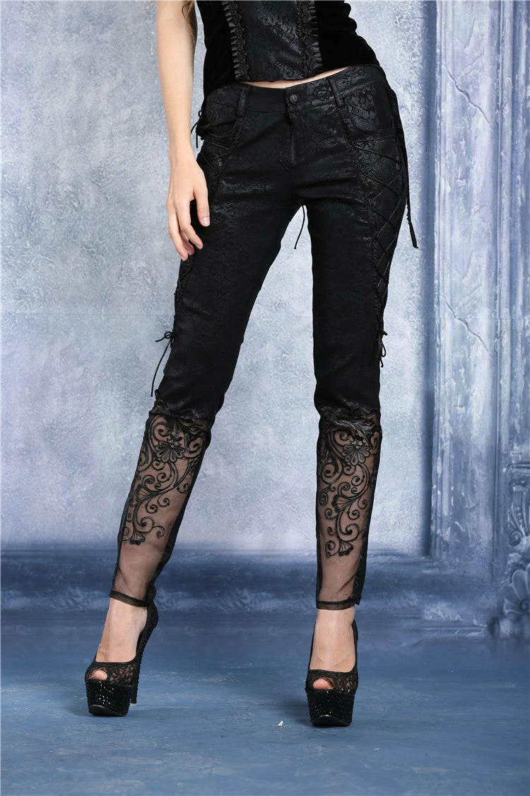 These beautiful trousers are covered in eye catching details including a delicate lace effect pattern in the trouser material. From the waist to the thighs, the stunning Bijou trousers feature corset style lacing which is contrasted by the lace