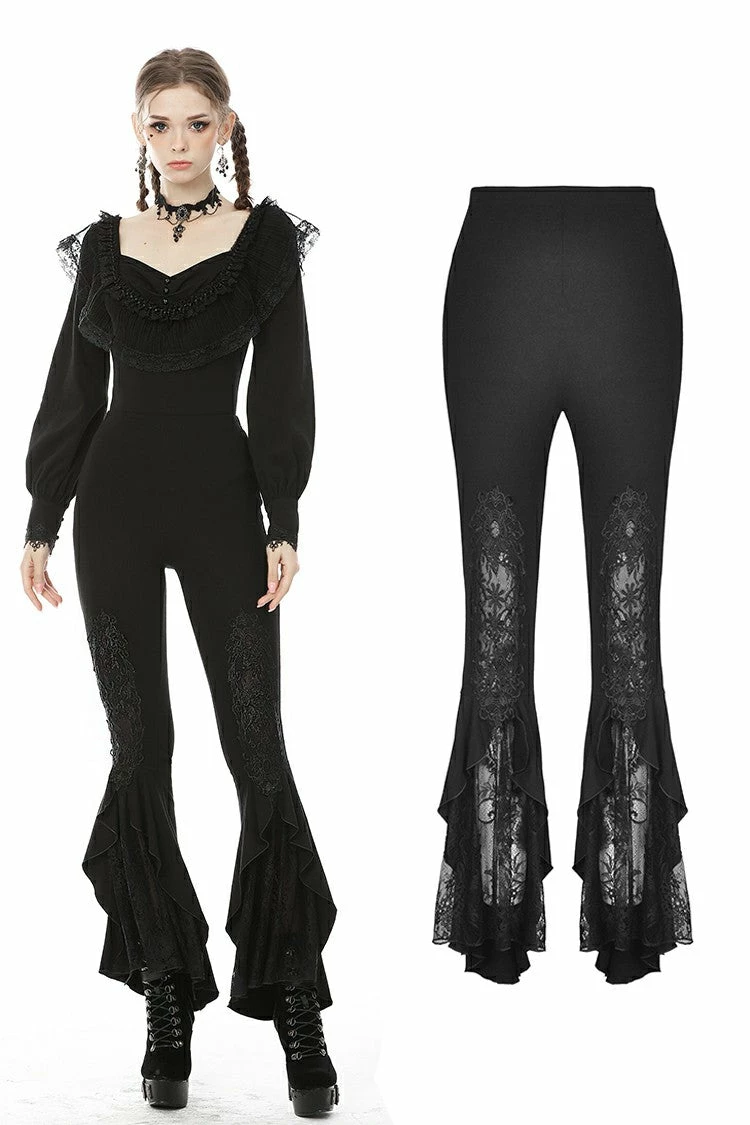 This gorgeous pair of leggings from Dark In Love features eye catching black lace applique and flare out below the knee with added lace. Easy to dress up or down, these stretch fit leggings have an elasticated waist. For the perfect fit please see Dark in Loves size guide in the images.