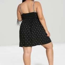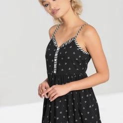 Adorable black babydoll dress with white contrast ribcage heart print from Hell Bunny. This stunning sleeveless dress features adjustable spaghetti straps, elasticated back and gathered waistline for the perfect fit and comfort. This stylish dress also features a decorative black and shite stripe placket with buttons that matches the straps. This dress looks awesome with heels or chunky boots!