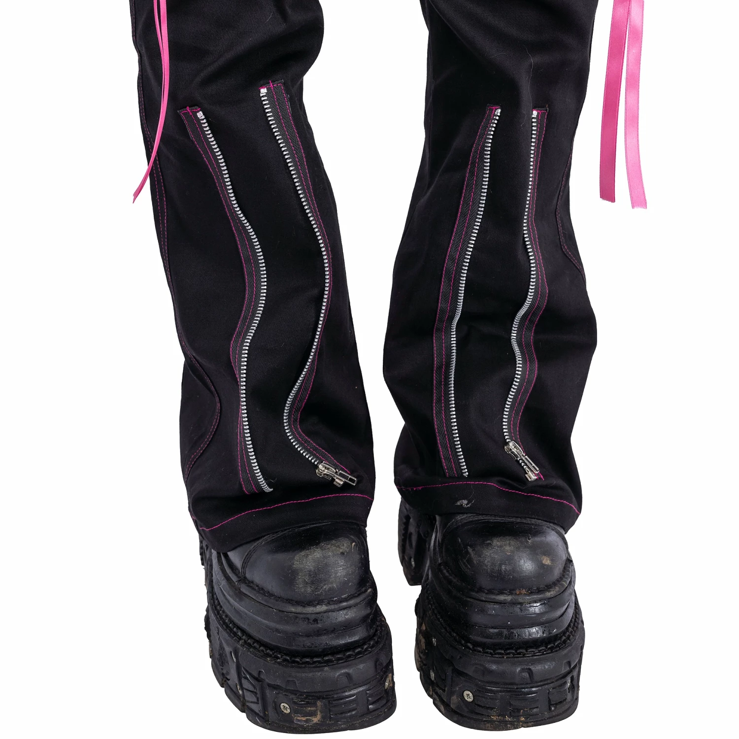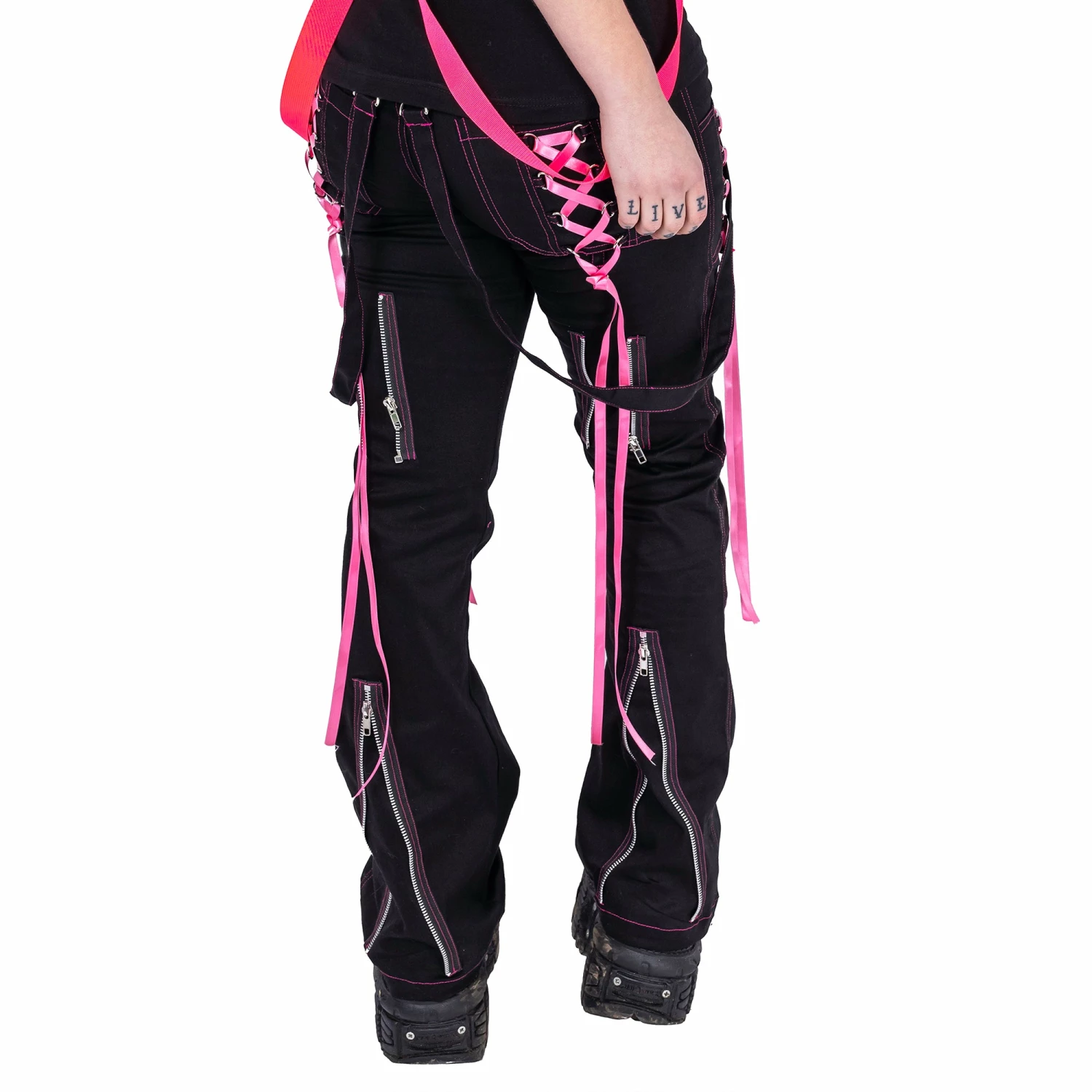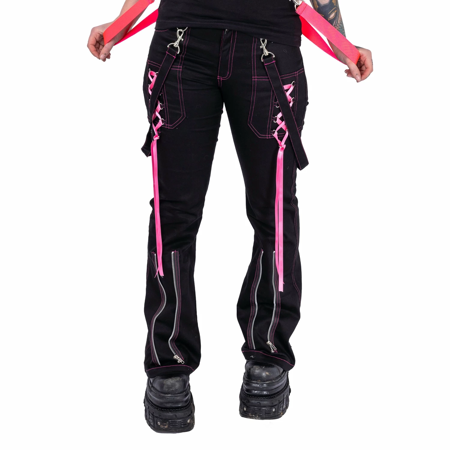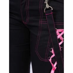 Stylish and edgy black trousers from Innocent with detachable straps, metal detailing and pink ribbon lacing to accentuate your curves. These stunning fitted cargo pants are made from a stretchy cotton blend fabric with pink contrast stitching! Look amazing dressed up or down!