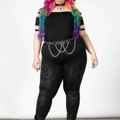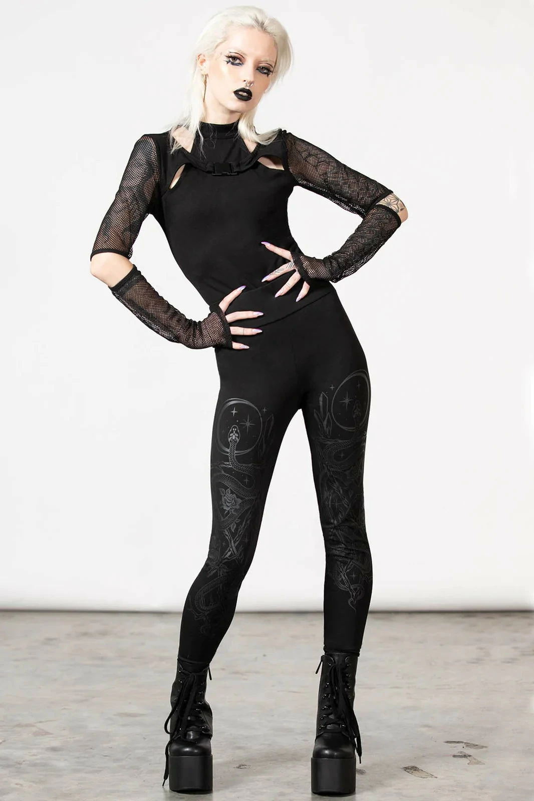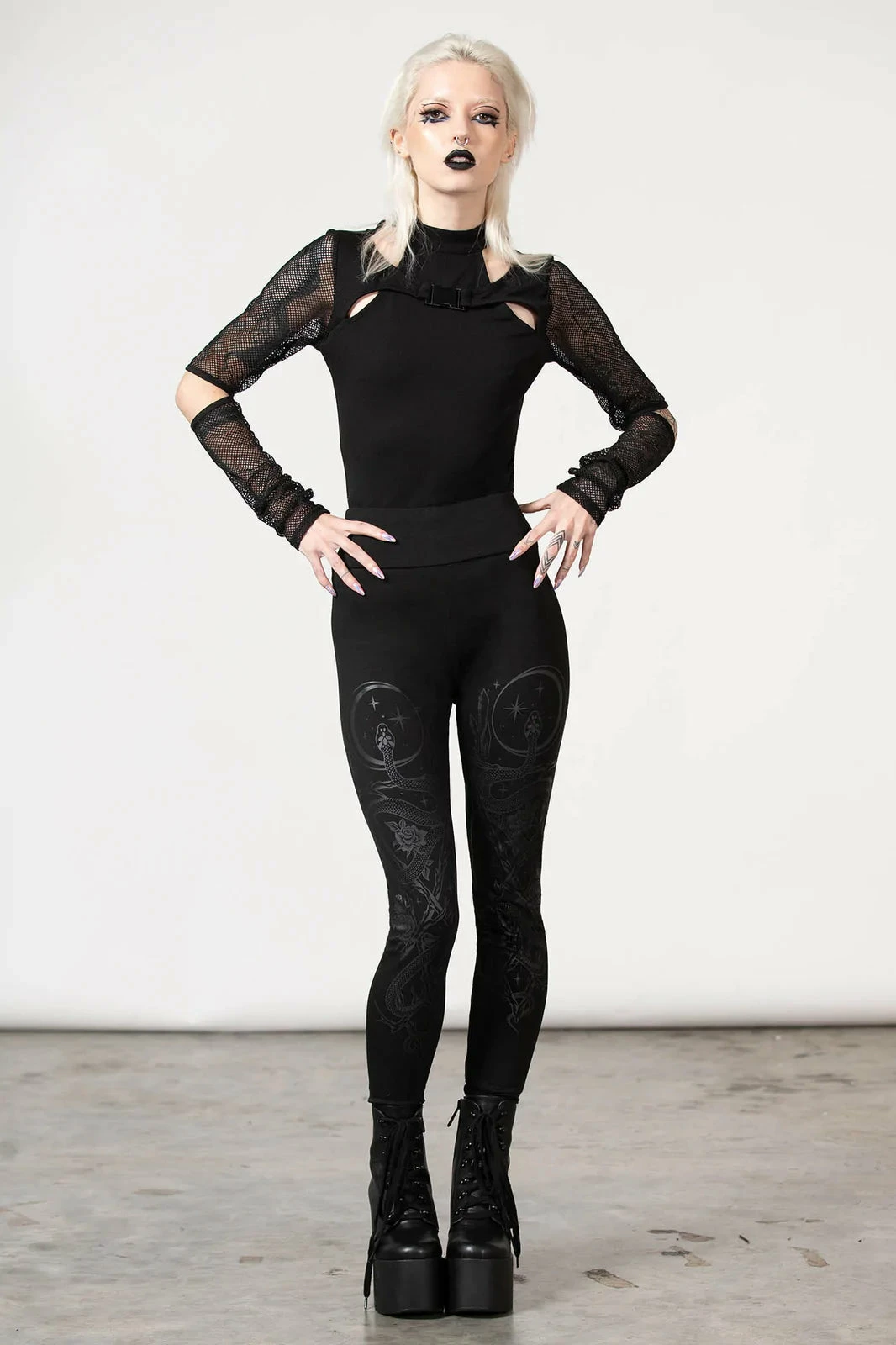 These must-have black leggings are made from a soft stretchy cotton fabric with a wide waistband for a comfortable flattering fit. These must have high waisted leggings feature an all over statement black on black contrast serpent print!