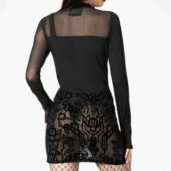 Striking black long sleeved mesh top from Killstar made from a stretch mesh fabric. This seductive body hugging black fishnet top will show off your curves to perfection with some extra attitude and also features a high neck and thumbholes.