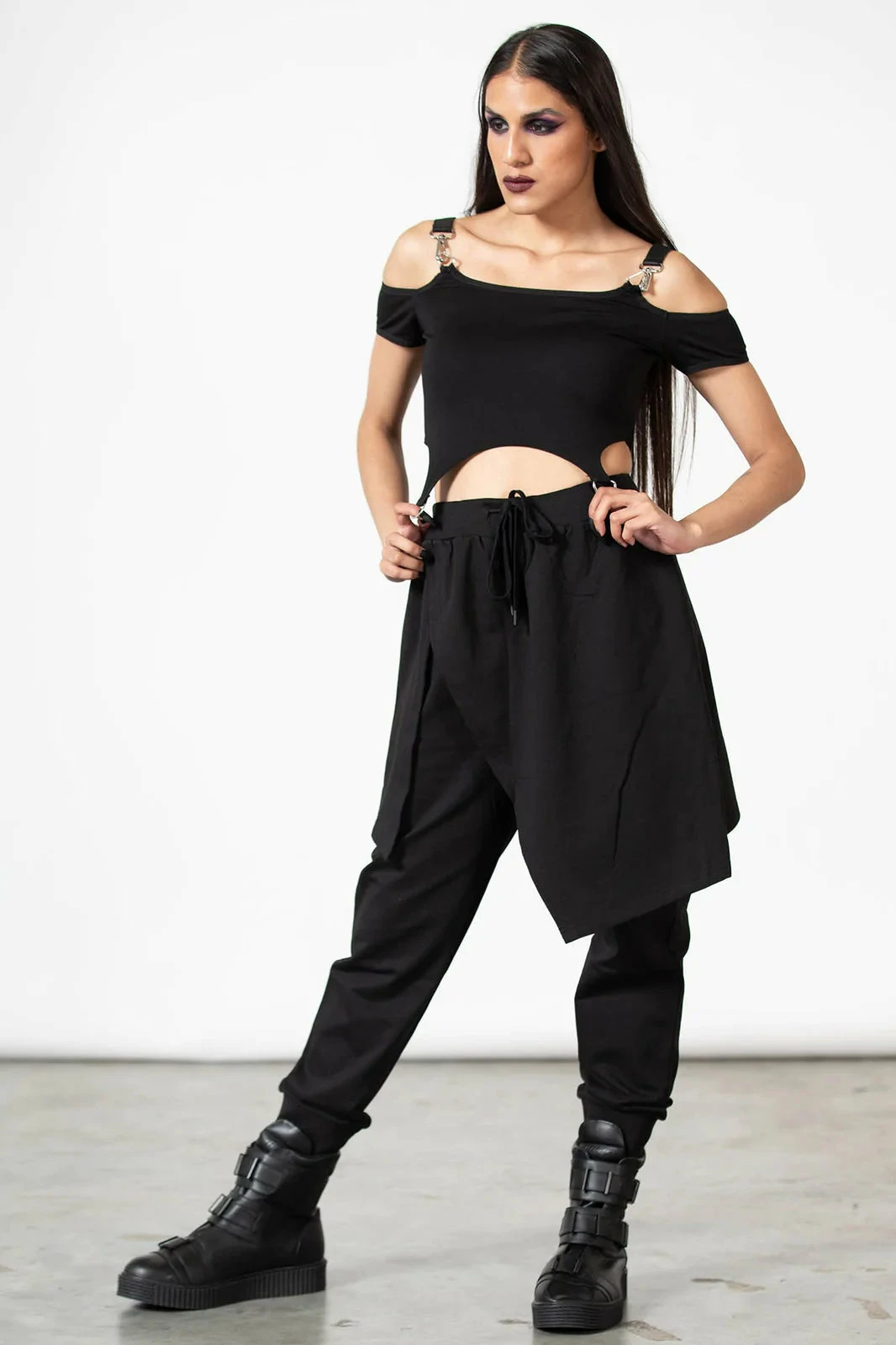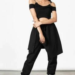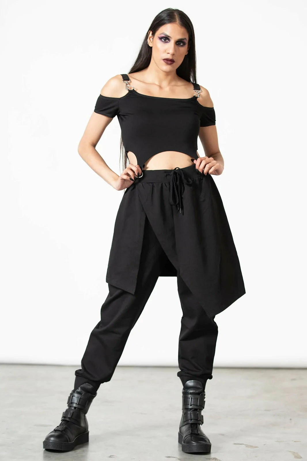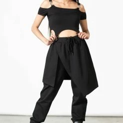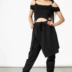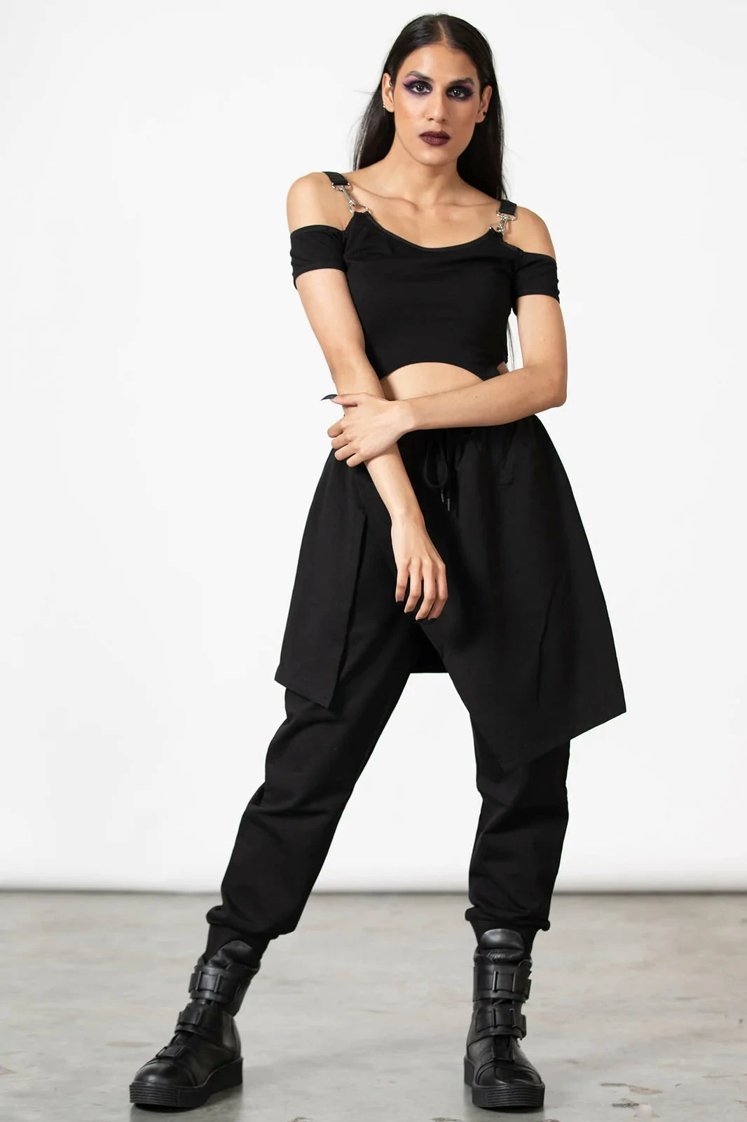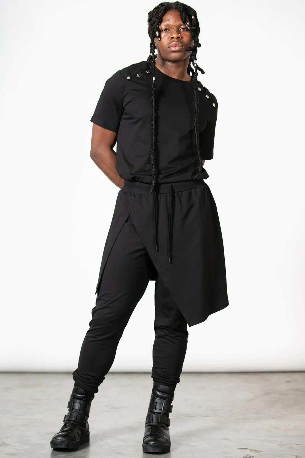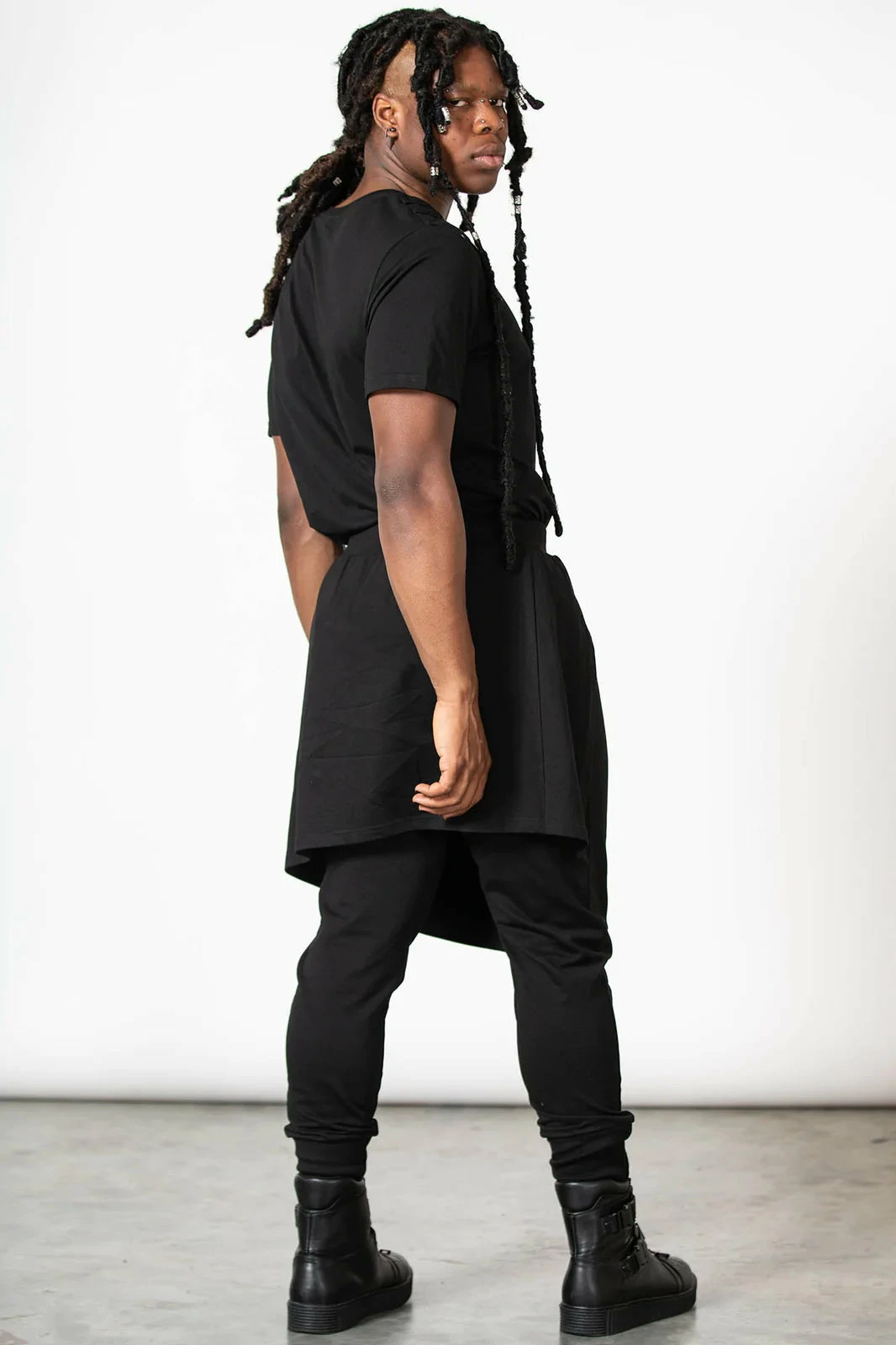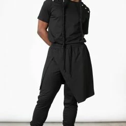These stylish and practical black jogging bottoms are made from a luxury soft cotton fabric in a long length relaxed style with wrap around skirt that looks good on everyone! These longline black unisex tracksuit bottoms feature ankle cuffs and a drawstring adjustable wide waistband.