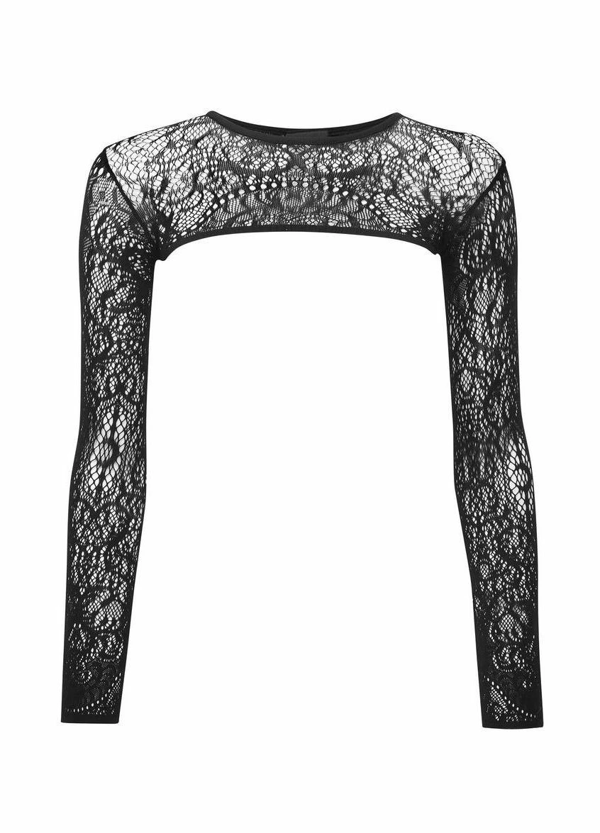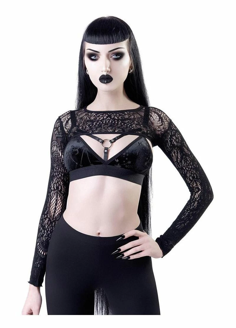 Killstar Eris Lace BoleroThe super cute Eris bolero from Killstar features their custom black stretch lace. Featuring a wide neckline and long sleeves, this cropped bolero is perfect for layering with your favourite tops.