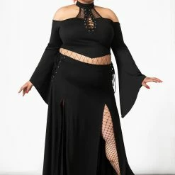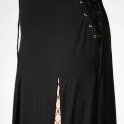 This breathtaking black maxi skirt from Killstar is made from a soft stretch fabric that hugs your curves and drapes to perfection. Totally versatile, this stunning maxi skirt has dramatic splits and adjustable lace up panels on both sides. This beautiful black fitted maxi skirt has a wide elasticated waist for comfort and is sure to turn heads!