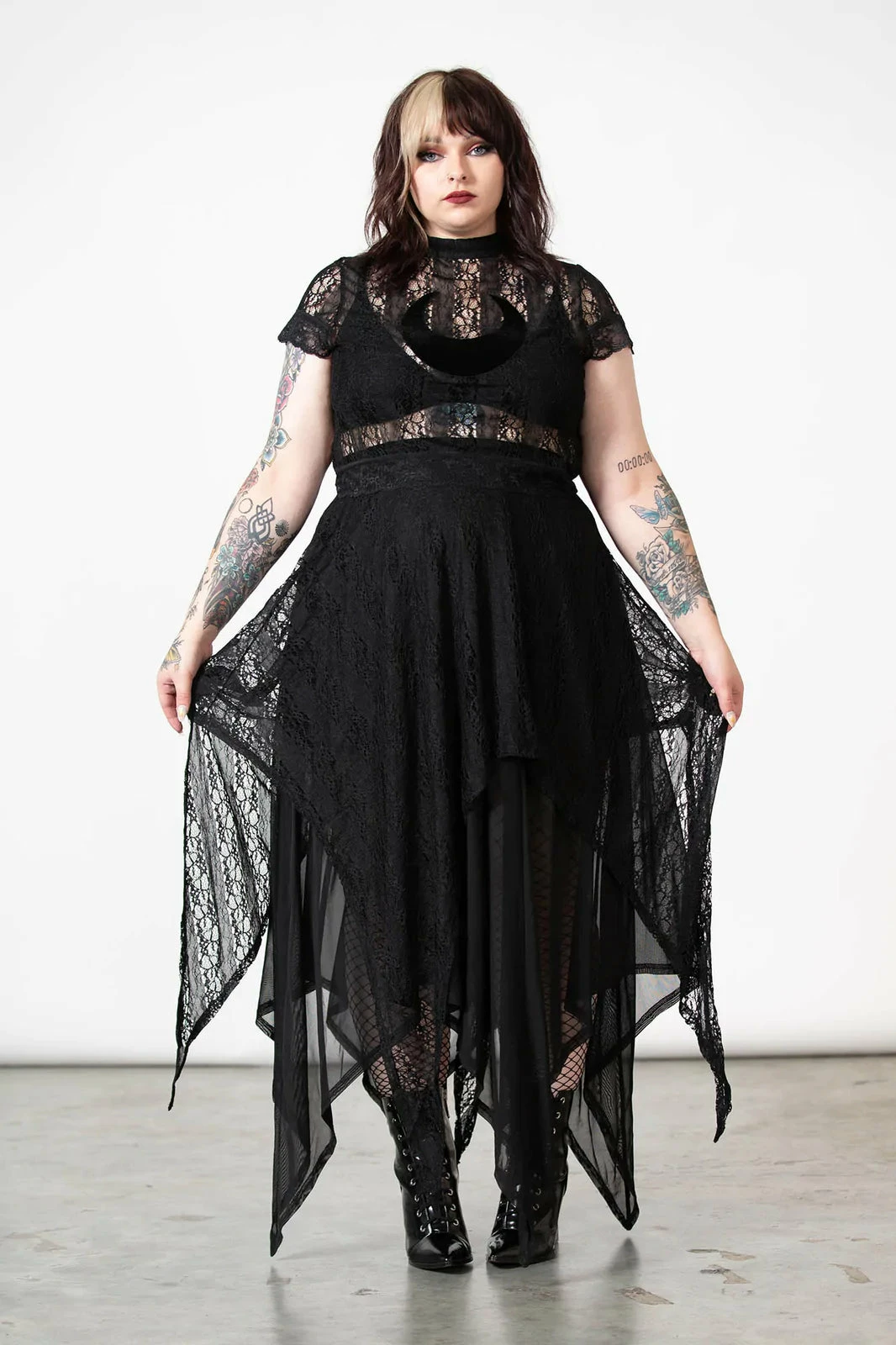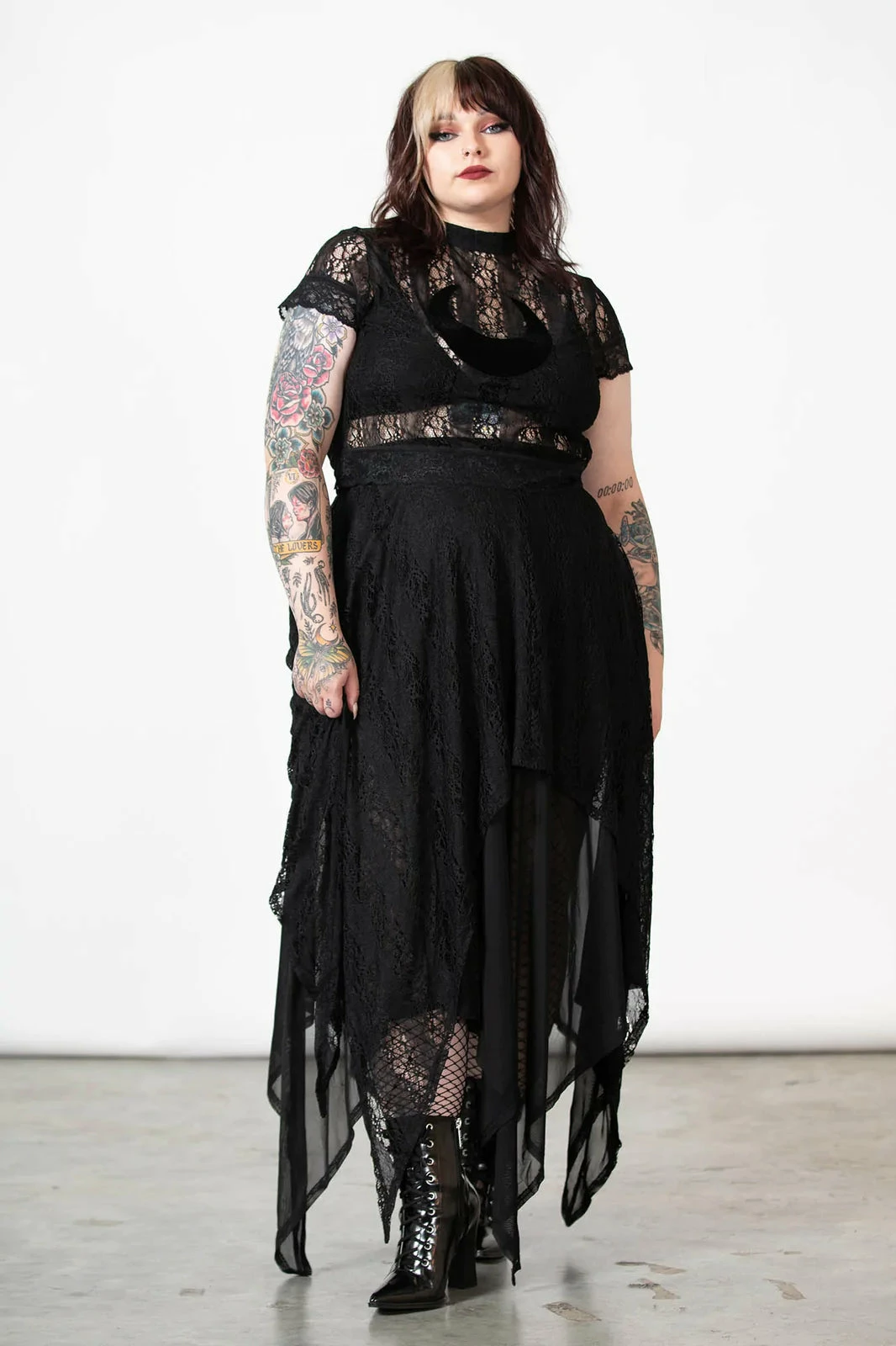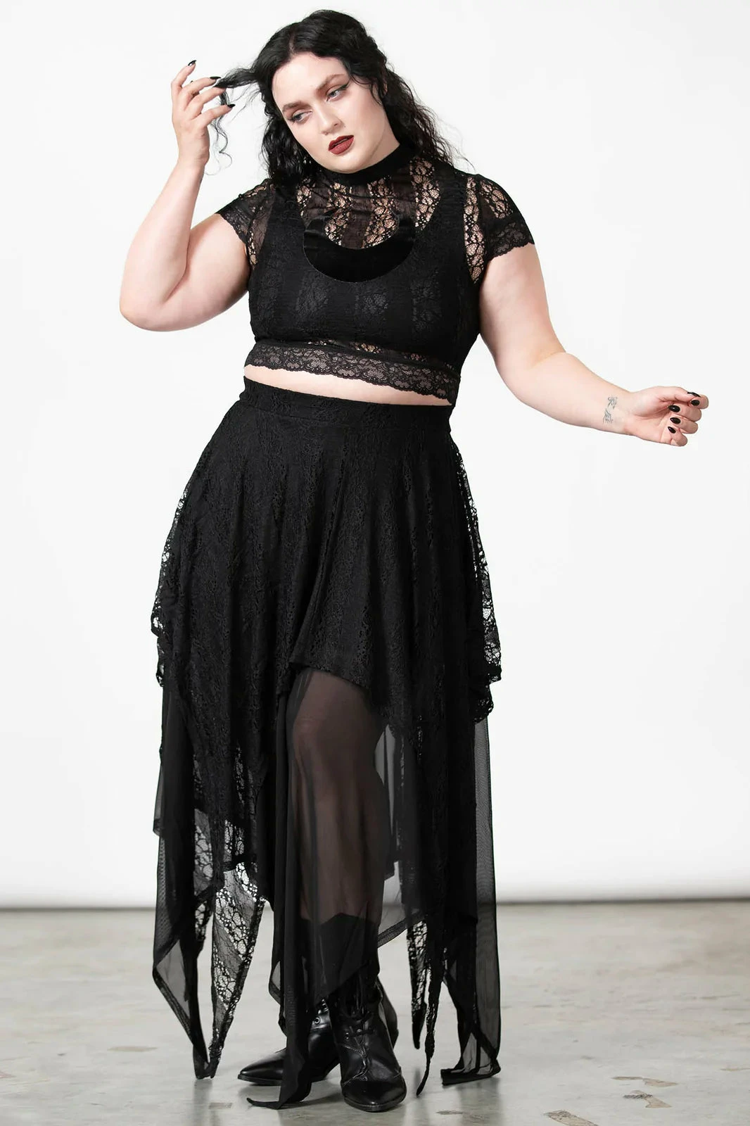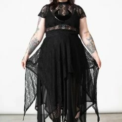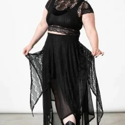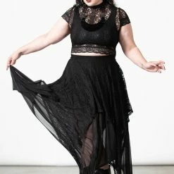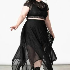Lovely black maxi skirt from Killstar that is made from layers of super soft stretch mesh and lace fabric that flow elegantly to show off your curves. This gorgeous black maxi skirt also features an elasticated waistband, hanky hems and a statement layered design for a stylish gothic look!