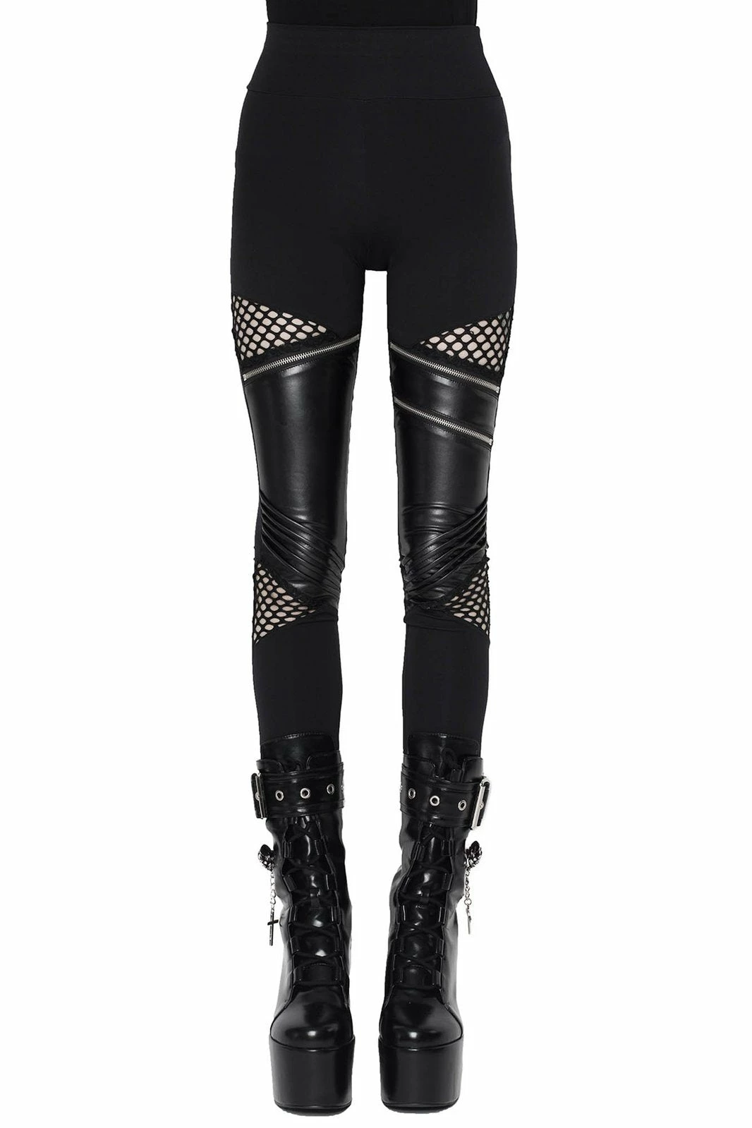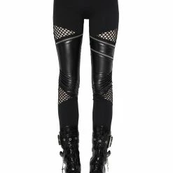 Absolutely stunning black leggings by Killstar that are made from a combination of stretchy jersey fabric and faux leather that will show off your curves and feel great to wear! Featuring stitch and zip detailing, accent fishnet panels to show off your shape and elastic waistband. Look amazing whatever you wear them with!