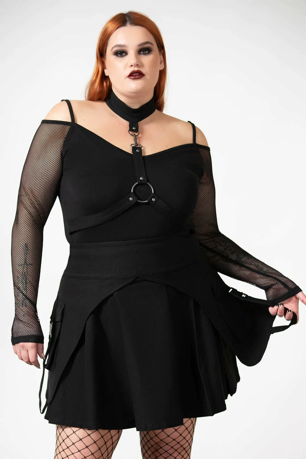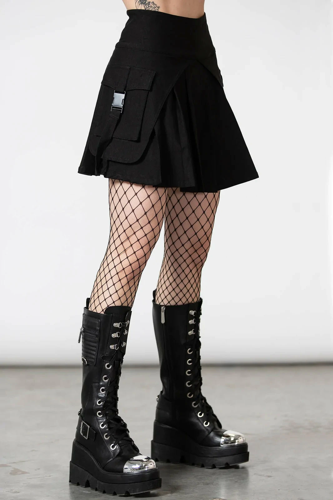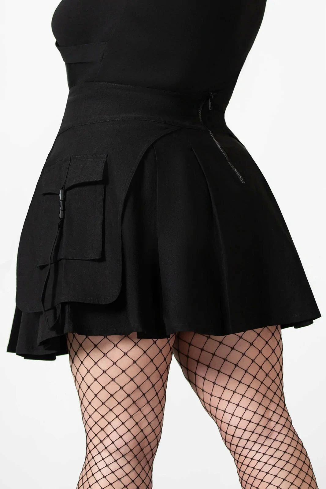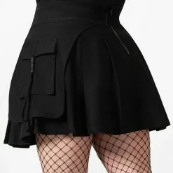 This stunning black pleated mini skirt from Killstar is made from a soft stretchy fabric with classically stylish and sultry pleats and a rear zip closure. This must-have black pleated mini-skirt has a gothic edge with pocket features on both sides with buckle closure! Dress it up or down according to your mood!