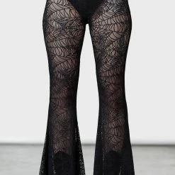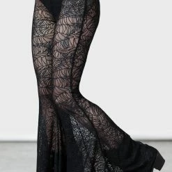 You’ll love these stunning black mesh bell bottoms from Killstar made from soft stretch sheer spiderweb lace fabric with an elasticated waistband and built in opaque panty. These seductive see-through flared trousers are fitted to flaunt your figure and have a statement spiderweb pattern that looks amazing on a night out!