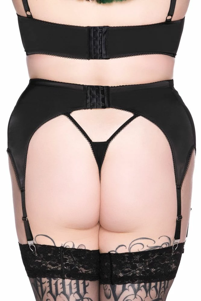 Killstar Webutant Black Garter Belt is made from a delicate soft stretch fabric with adjustable suspender straps. This seductive piece features entrancing hook and eye fastening and delicate trims!