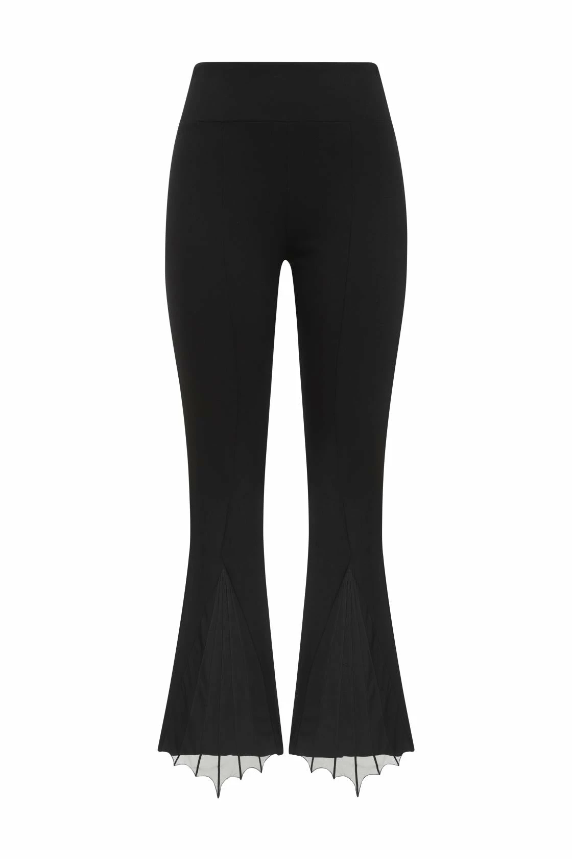 Gorgeous flared trousers from Necessary Evil featuring a soft waistband and a bat wing inspired mesh panel to the front of the flared cuffs. Perfect everyday piece or dress up for fabulous nights out.