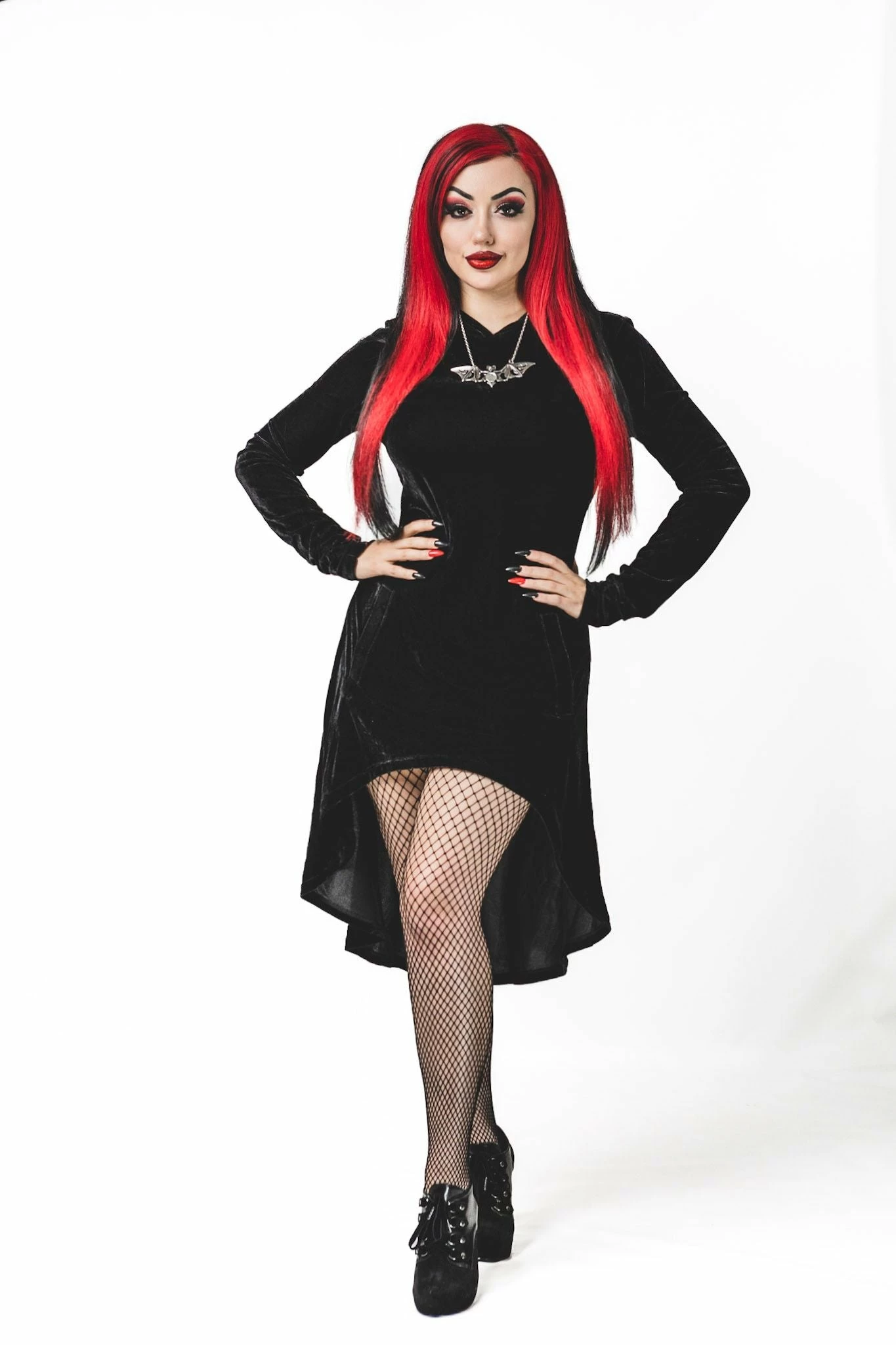 This beautiful hoodie from Necessary Evil comes in a lovely soft velvet and features long sleeves, a high – low hemline and the all important pockets.