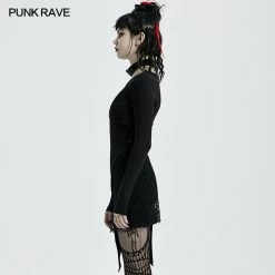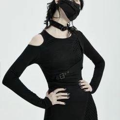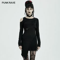 The beautiful figure-hugging Farren dress from Punk Rave features a round neckline and cold shoulder detail to one side. With an asymmetric wrap effect design and adjustable buckle, the net panel overlay adds texture to this awesome dress. For the perfect fit please see Punk Rave’s size guide in the images.