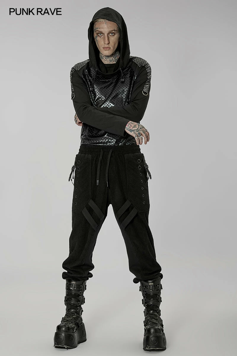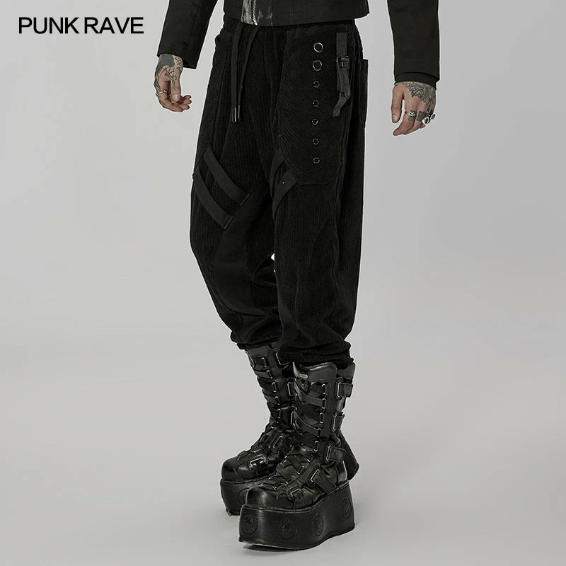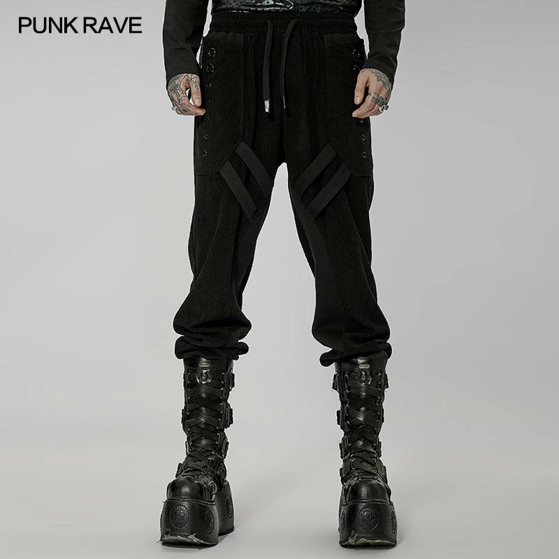 Relaxed fit black trousers from Punk Rave. Made from a soft textured fabric featuring a drawstring waistband, these trousers look amazing on. Easy to match with anything with strap detailing and metal hardware.