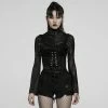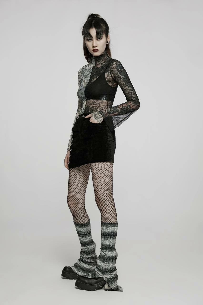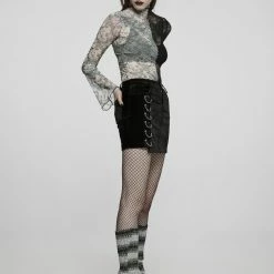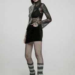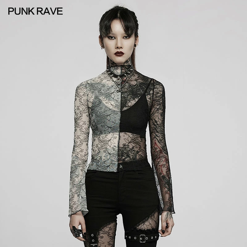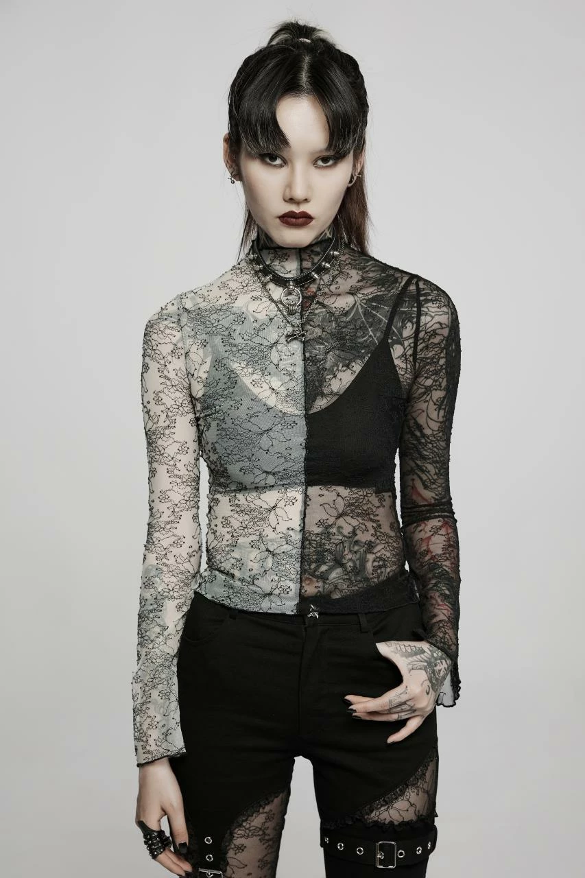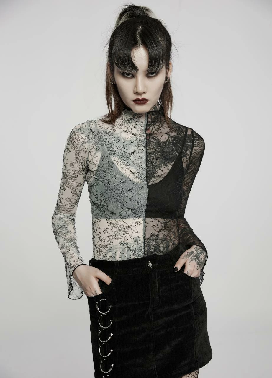 Gorgeous top from Punk Rave featuring long bell sleeves and a high neckline. With a white floral pattern to one side and black floral pattern to the other side, this awesome top look great on. For the perfect fit and fabric composition, please see Punk Rave’s size guide in the images.