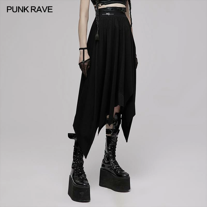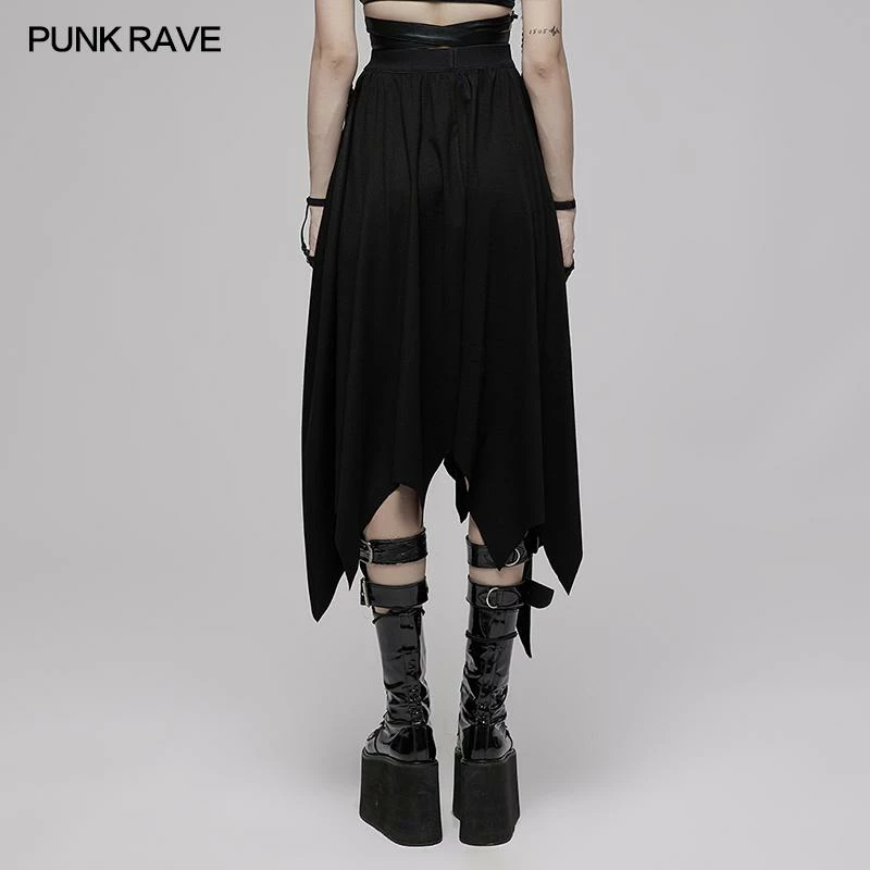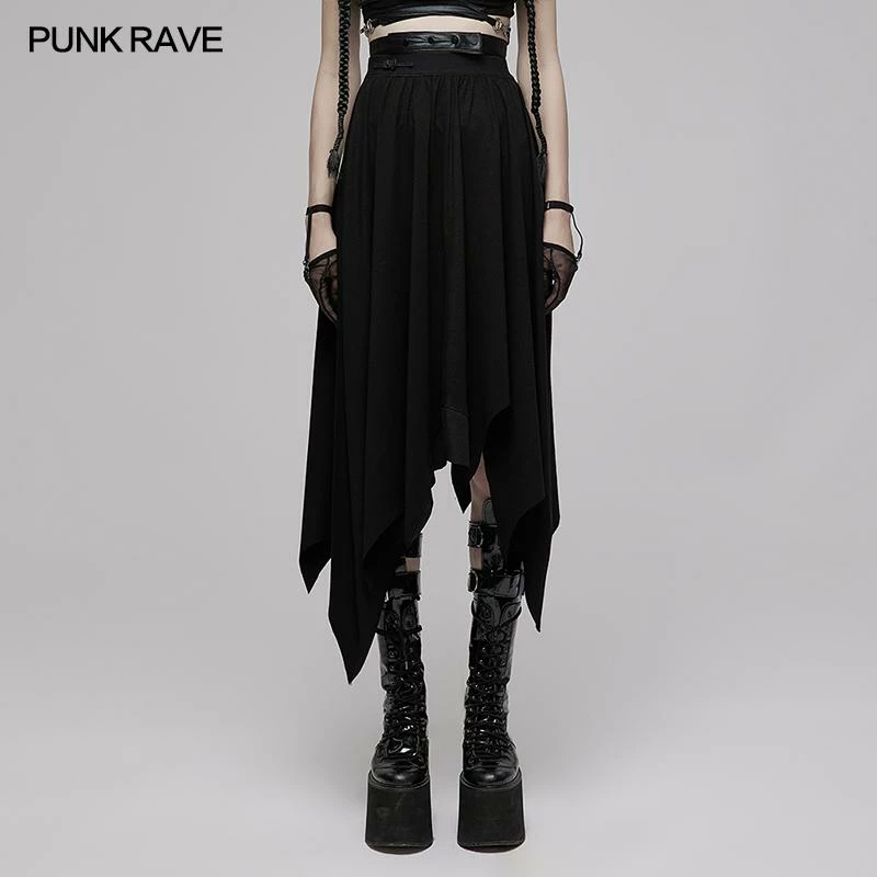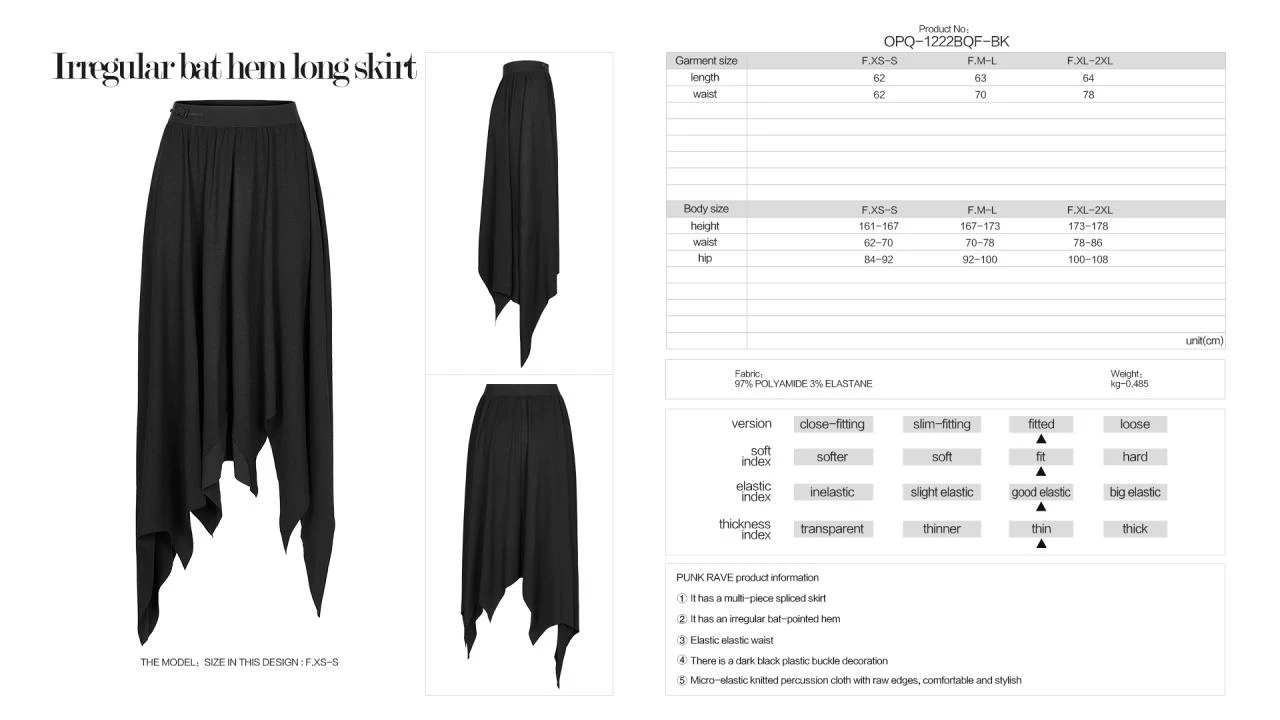 Gorgeous skirt from Punk Rave featuring a bat wing irregular hemline, buckle adornment and elasticated waistband. For the perfect fit please see Punk Rave’s size guide in the images