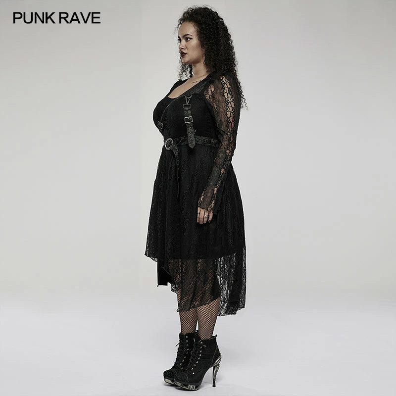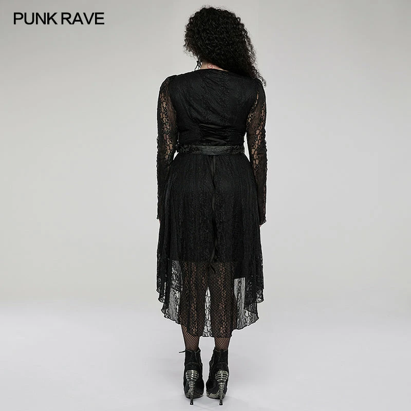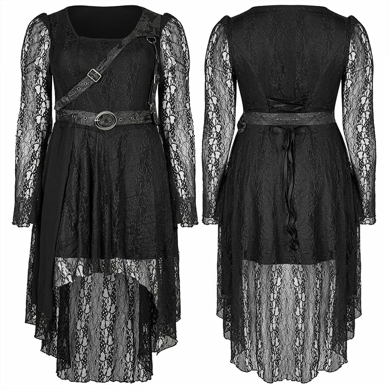 Stunning lace dress from Punk Rave featuring long lace sleeves and a high/low hemline. With a fully lined body and belted accents, this beautiful dress look great on. For the perfect fit and fabric composition, please see Punk Rave’s size guide in the images.